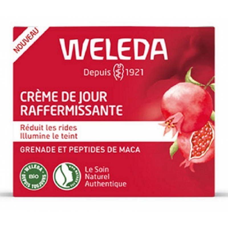 La Crème de jour raffermissante à la grenade bio 40ml Weleda apporte une association huile de grenade et peptides de racine de maca tonifiants.