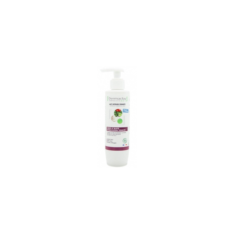 Le Lait intense fermeté corps et buste Café et Thé vert de la marque Dermaclay, hydrate (les couches superficielles de l'épiderme), raffermit, revitalise et ralentit le vieillissement cutané (action anti-âge et anti-radicalaire).