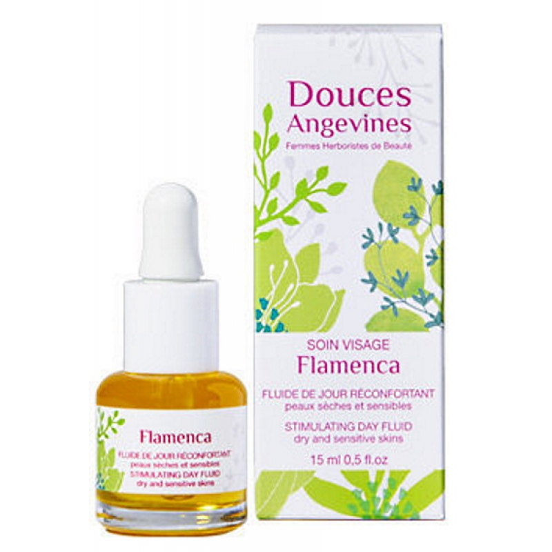 Flamenca Soin de jour réconfortant baume fluide 15ml Les Douces Angevines pour soulager rapidement les peaux sensibles et présentant des rougeurs.