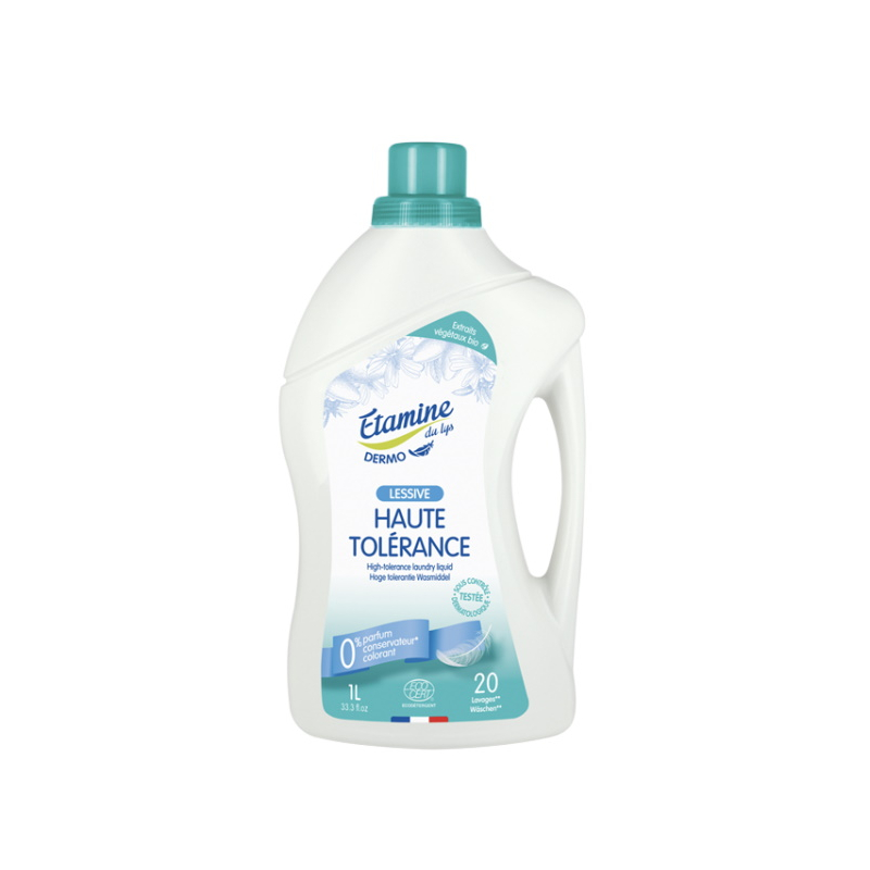 Etamine du Lys Lessive Dermo haute tolérance 1 Litre est aussi efficace aussi bien à la main qu'en machine et à basse température,