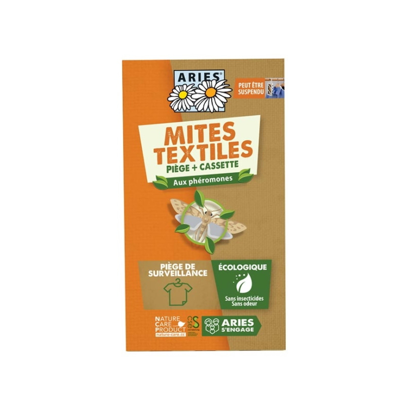 Ce piège mis au point par la marque Aries est un accessoire écologique ne contenant aucun insecticide et dépourvu d’odeur. Cet article est conçu pour contrôler le développement des mites pendant une période de 10 à 12 semaines. Son application facilite l’identification des larves ravageuses. Efficace, ce piège consiste à attraper les mites en les collant, assurant ainsi la protection des vêtements, tissus, tapis, couvertures. Ces mites piégées permettent d’avoir une idée sur le degré d’infestation. Pouvant traiter un champ d’action de 70 m², cet accessoire peut s’utiliser avec le spray anti-mites textiles et le diffuseur répulsif pour davantage d’efficacité.