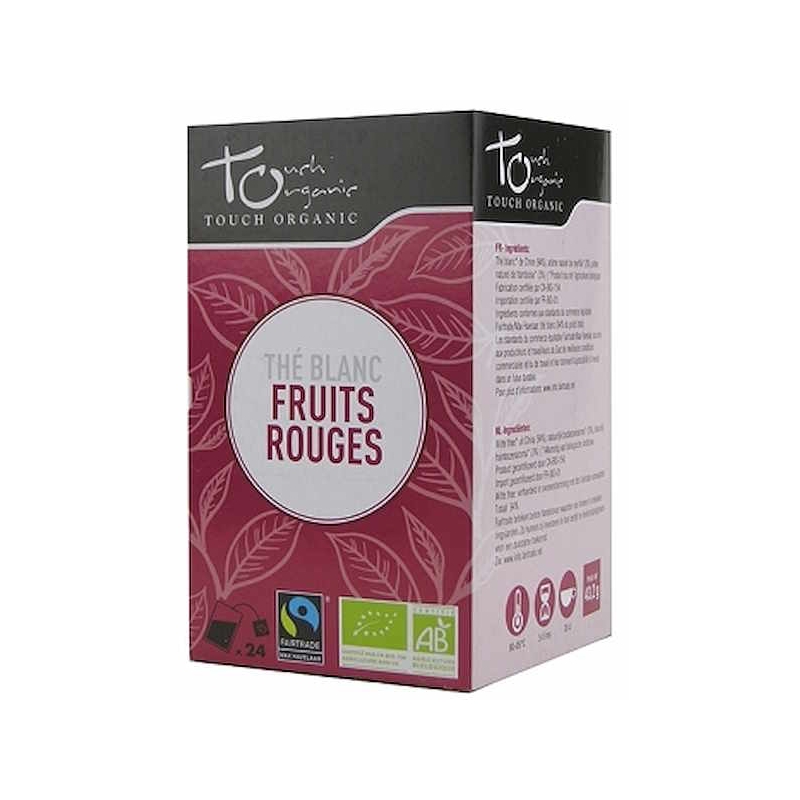 Thé blanc BIO aux fruits rouges 24 sachets 43g Touch Organic riche en flavonoïdes et délicieux par ses arômes acidulés de fruits rouges.