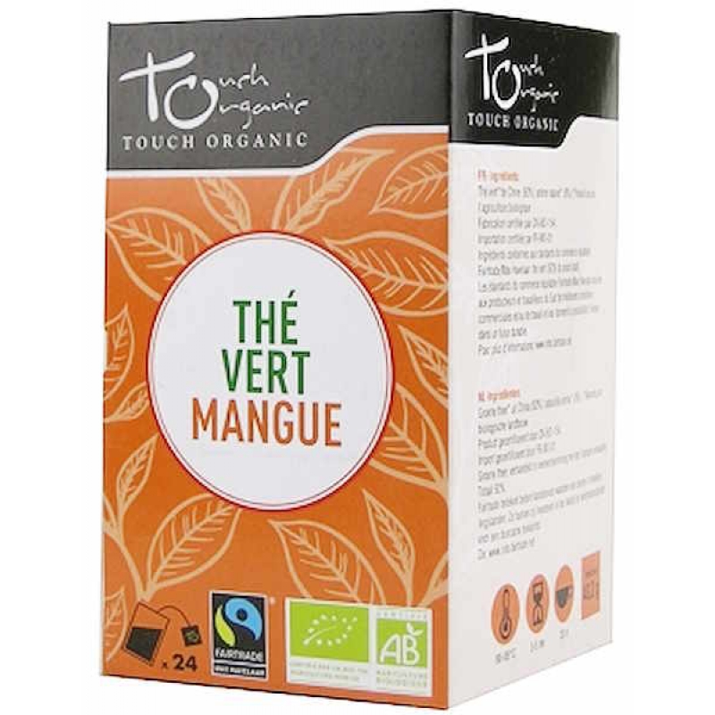Thé vert BIO à la mangue 24 sachets 43g Touch Organic avec une formule aromatisée, thé vert bio, réglisse et extrait de mangue.