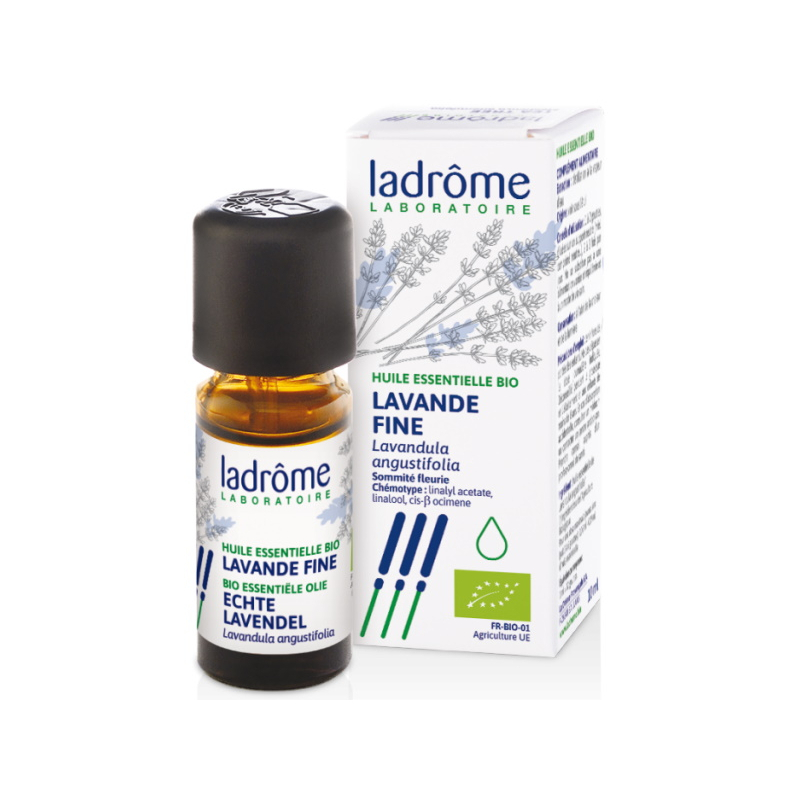 Pour déstresser votre organisme et avoir du repos et le retour du sommeil, on vous propose tout naturellement, Ladrome Huile essentielle de Lavande fine Bio 10ml, pour des actifs comme l'huile essentielle de lavande vraie de l'espèce Lavandula angustifolia.