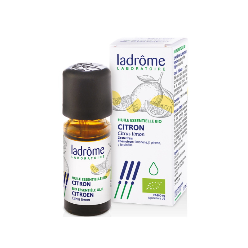 Citron bio huile essentielle 10ml Ladrome pour stimuler la digestion et les défenses naturelles.