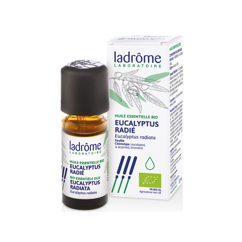 Ladrome Eucalyptus radié Bio 10ml est une huile essentielle odorante, fine et antiseptique.