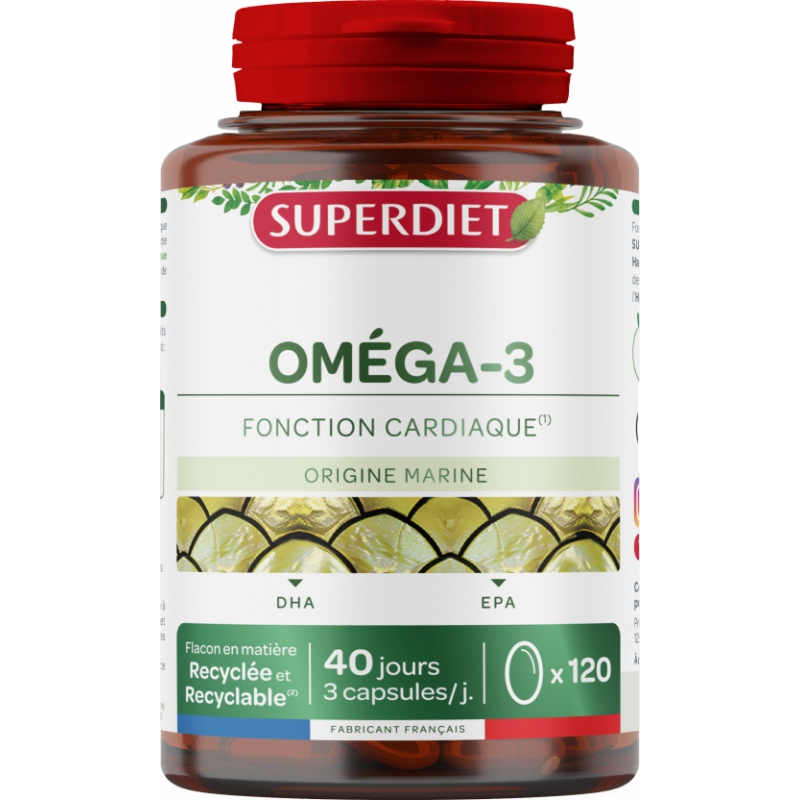 Super Diet Oméga 3 120 capsules permet de supporter une fonction cardiaque normale.