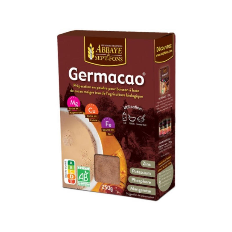 Germacao Petit déjeuner au cacao 250 g permet de s’offrir un petit déjeuner substantiel. Renfermant 5 céréales complètes issues de la culture biologique, des algues marines, il contient essentiellement du cacao accroissant son apport en phosphore, magnésium et fer. Connu pour ses effets anti-fatigue, ce produit riche en vitamines et autres nutriments redonne rapidement du dynamisme et de la vigueur à l’organisme. Très pratique pour un usage familial, Germacao séduit par son goût délicieux. Pour un régime plus équilibré et facile à préparer, il peut être associé à d’autres produits alimentaires comme le lait, le fromage, les yaourts.
