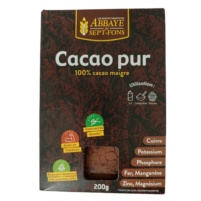 Adapté aux diabétiques, ce cacao pur 100% non sucré de la marque Abbaye de Sept Fons, riche en magnésium et en fer, est une solution efficace contre le déséquilibre alimentaire chez les enfants. Ce relaxant musculaire naturel fournit plus de vigueur et de vitalité à un corps faible. Pour remonter le moral, c’est un véritable allié contre le stress et le surmenage. Il stimule en même temps les fonctions intellectuelles. Mélangé avec du lait chaud, ce cacao bio non sucré peut être pris au goûter ou au petit-déjeuner pour un individu en bonne santé. Il sert également à préparer de délicieux desserts.