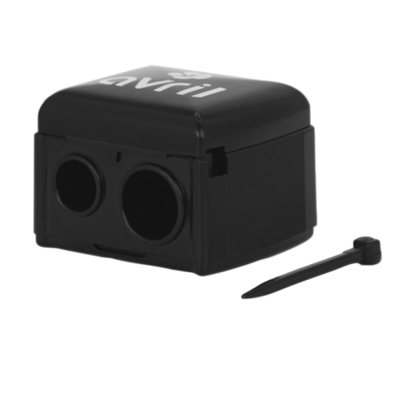 Le taille-crayon 2 trous avec récupérateur complète la trousse de maquillage. Cet instrument est utilisé pour affiner les mines des crayons à lèvres et des crayons pour yeux. Il dispose de deux trous aux diamètres différents et d’un récupérateur pour optimiser son usage.