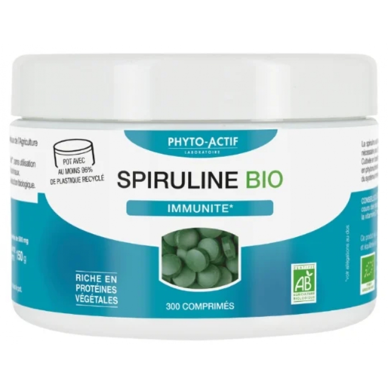 Phyto-Actif Spiruline bio 100% naturelle Immunité Fatigue 300 comprimés Paide à apporter immunité et vitalité à l'organisme.