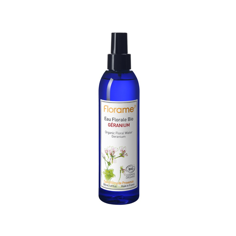 Les matières premières majeures sont : eau florale de géranium bio.