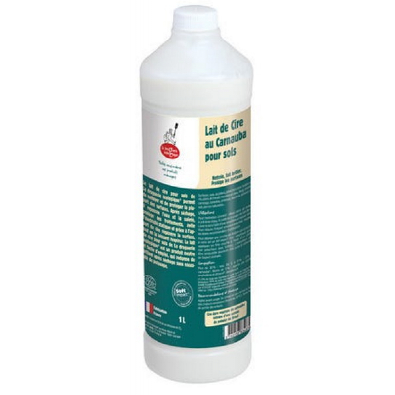 Droguerie Ecologique Lait de cire au Carnauba pour sols 1 litre permet de laver, de faire briller et de lustrer (cirer) les surfaces planes et lisses.