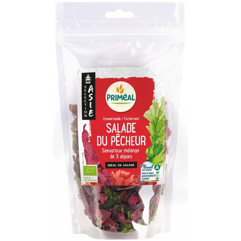 La Salade du pêcheur origine France Algues 50g Priméal apporte 3 algues marines, Nori, Laitue de mer et Dulse porphyra.