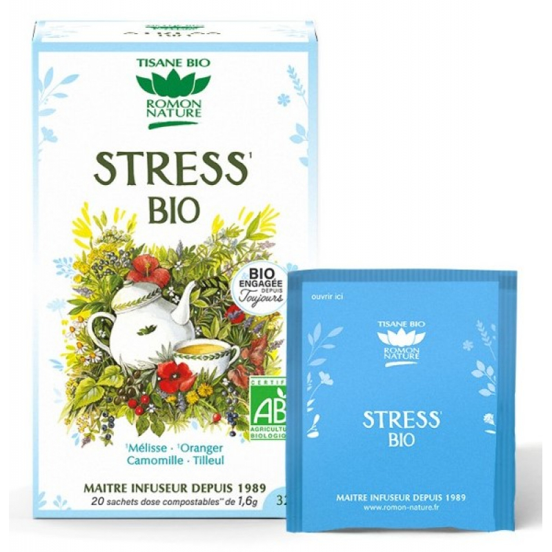 La Tisane Stress, de la marque Romon Nature, procure de nombreux bienfaits, tout en apportant un effet apaisant, et relaxant.
