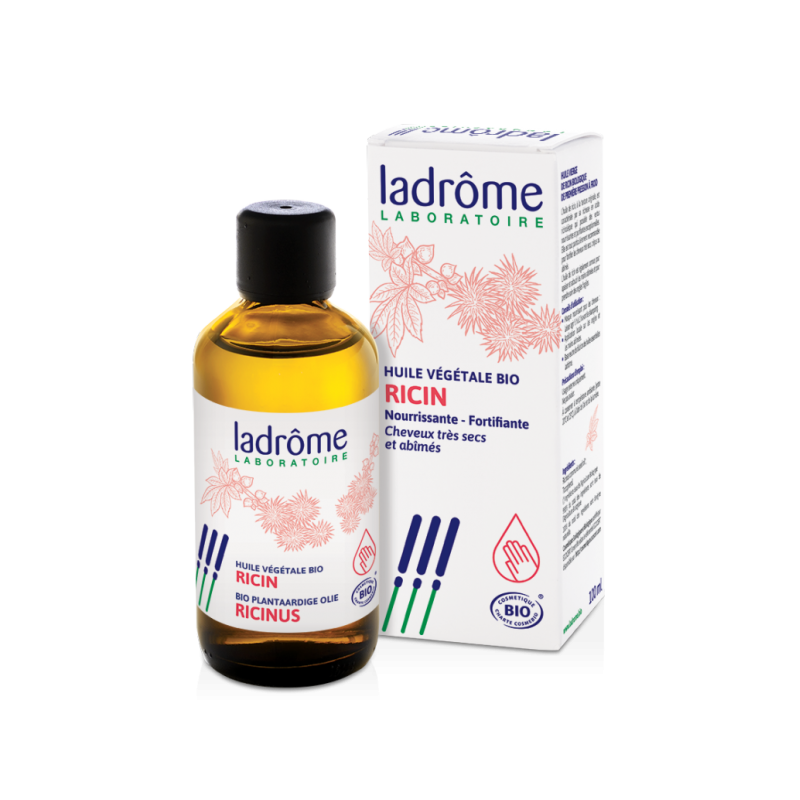 Ladrome Huile végétale de Ricin bio 100ml assure la protection et la régénération des cheveux, des cils, des ongles et de la barbe.