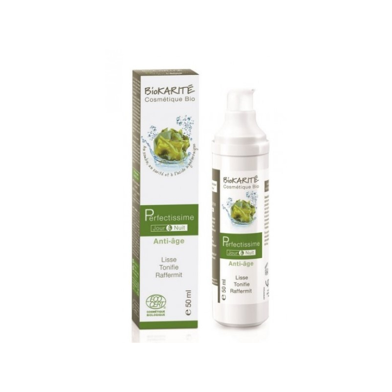 Le perfectissime Soin Anti Age Jour/Nuit Karité Kombu Acide Hyaluronique 50 ml permet de régénérer naturellement la peau et d’estomper les marques du vieillissement. Il associe des actifs puissants pour une peau plus ferme et douce.