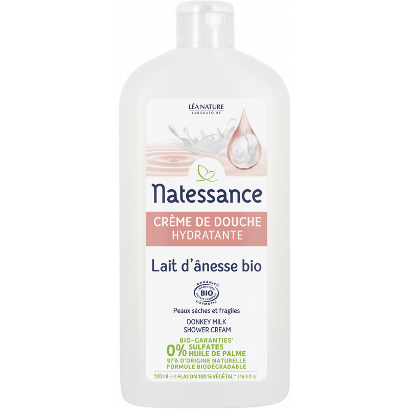 Formulé sans savon et avec une base lavante végétale douce issue de noix de coco, la crème de Douche lait d'ânesse camomille sans sulfates Natessance se transforme en une mousse aérienne qui nettoie la peau tout en respectant l'équilibre cutané. Imaginez une douche succulente au parfum délicieusement sucré. et laissez-vous envelopper par la douceur de ce gel douche familial. Moment de volupté assuré ! Ce gel douche est testé sous contrôle dermatologique, il est sans savon et son pH est physiologique.