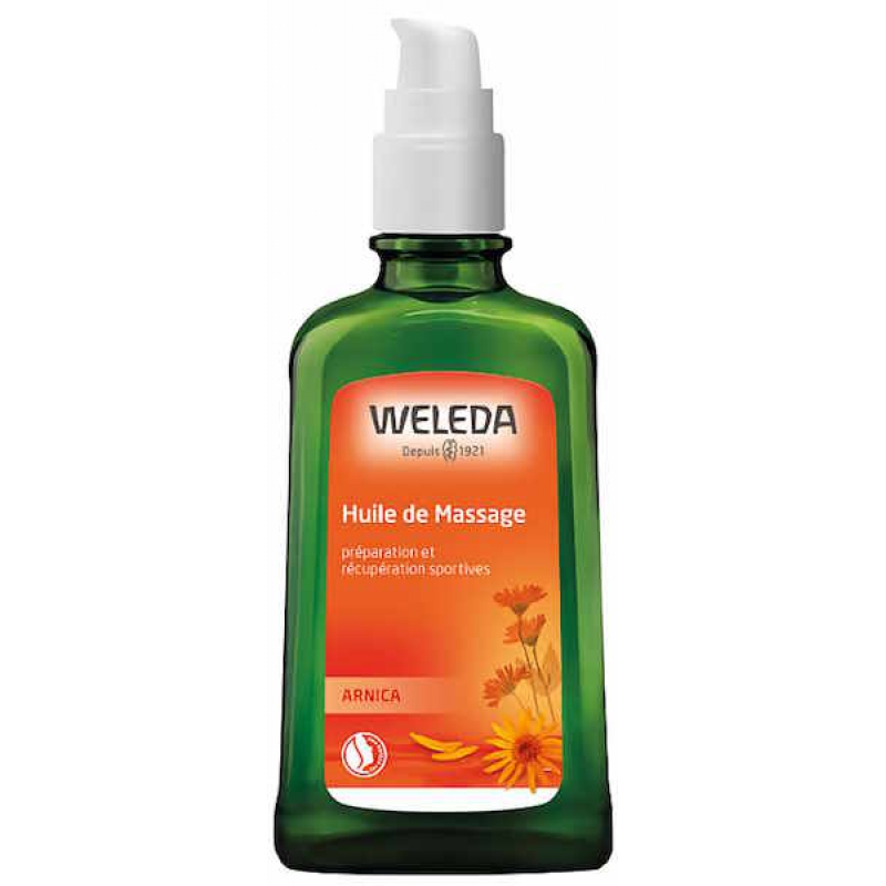 Weleda Huile de massage à l'arnica 100ml avec pompe permet d'apporter une composition huileuse à base d'huile de tournesol, d'huile d'olive, d'extrait d'arnica et d'extrait de bouleau.