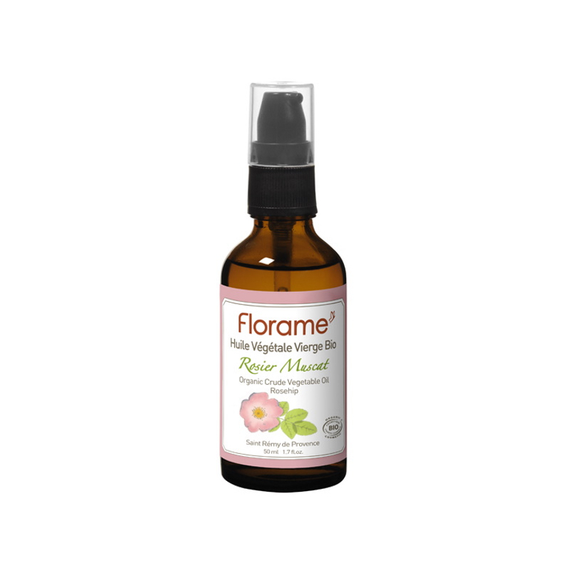 Pour que votre peau puisse avoir éclat, action anti-âge et protection, florame Huile de Rose Musquée Bio apporte de l'huile de rose musquée de l'espèce Rosa rubiginosa (Roseship).