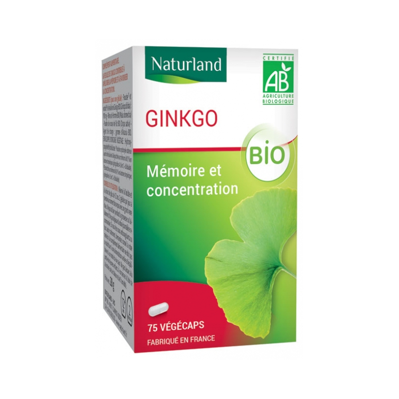 Naturland Ginkgo Biloba bio 75 Gélules Végécaps permet d'aider à améliorer mémoire et concentration.