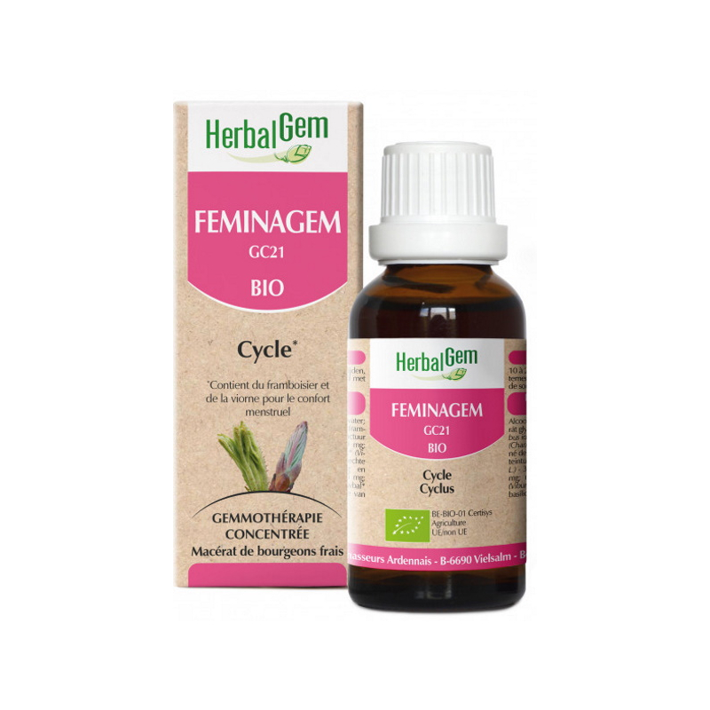 Feminagem 50ml Herbalgem est un supplément alimentaire de gemmothérapie, du Laboratoire Herbalgem, visant à favoriser le confort menstruel et apporter une solution aux règles douloureuses, crampes menstruelles et humeur changeante.
