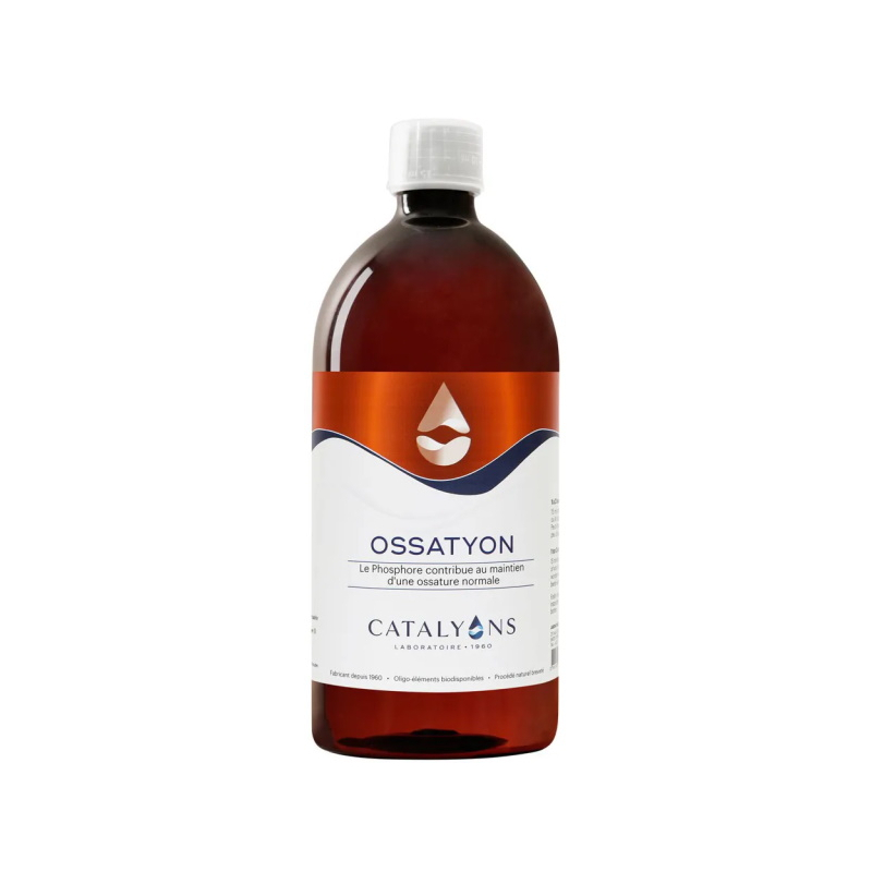 Pour votre organisme et avoir la construction et la réparation osseuse, car il contient du phosphore, qui est facilement assimilé et est spécifique de la trame osseuse, souvent associé à la prise de calcium, on a choisi sans hésitation, Catalyons Ossatyon 1 Litre, pour des actifs comme l'eau ultra-purifiée et dynamisée, le dihydrogénophosphate de Potassium, l'acide orthosilicique, l'acide borique, le carbonate de Cuivre.