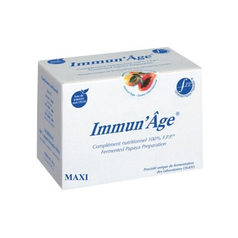Très concentré en une préparation de papaye fermentée 100% naturelle (extrait de papaye lacto fermentée 3 grammes), Osato Immun'Âge Maxi contribue à retrouver l'équilibre naturel de votre organisme. L'ensemble des ingrédients : des actifs constitués d'extraits de papaye fermentée obtenue par une lacto-fermentation lente selon le procédé FPP sont issus de la supplémentation alimentaire antioxydante. la papaye fermentée osato est le véritable ingrédient actif qui va cibler le stress oxydant élevé et les cas d'immunité faible ou affaiblie.