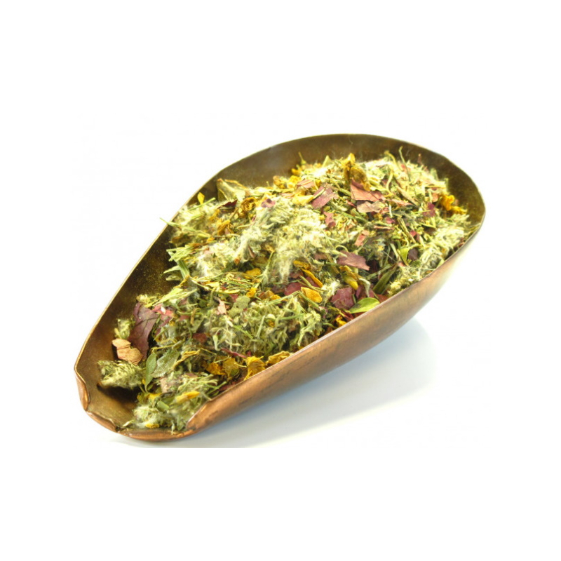 _Artichaut cardon feuille, aspérule odorante plante, bardane grande racine, cassis feuille, chicorée feuille, desmodium feuille, menthe nanah feuille, ortie piquante feuille, pissenlit feuille, réglisse racine, thym de provence feuille._