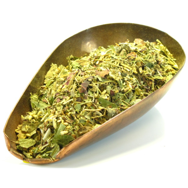 _Alchémille vulgaire sommités fleuries, aubépine fruit, houblon cône, millefeuille sommités fleuries, ortie piquante feuille, romarin feuille, sauge feuille, trèfle rouge fleur, vigne rouge feuille._