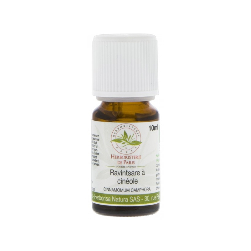 Herboristerie De Paris HUILE ESSENTIELLE RAVINTSARA BIO 10ML apporte une huile distillée à la vapeur d'eau de Cinnamomum Camphora.