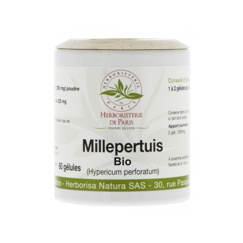 Pour votre organisme et avoir la mise en place de cures bien-être et revitalisantes en conjonction avec la pratique d'une activité physique et d'une alimentation plus appropriée, on a choisi sans hésitation, Herboristerie De Paris Millepertuis bio 250mg 60 gélules, pour des actifs comme la poudre de millepertuis issue de l'agriculture biologique de l'espèce hypericum perforatum.