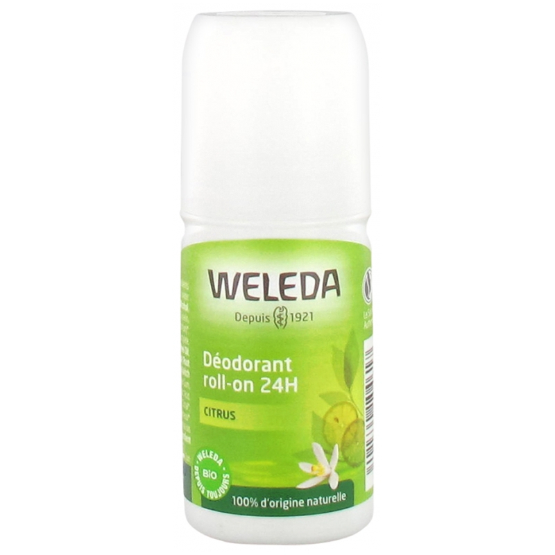 Déodorant roll on 24h Citrus Weleda est considéré comme produit d'hygiène biologique, et son avantage vient essentiellement de sa composition en actifs naturels : des actifs végétaux comme le citron, l'hamamelis et la réglisse. L'objectif de Déodorant roll on 24h Citrus est de donner fraîcheur et bien-être permettant justement d'améliorer votre aisselle. Le Déodorant roll on 24h Citrus apporte aussi propreté et douceur. La formulation spécifique de ce Déodorant roll on 24h Citrus Weleda procure des actifs naturels : de l'huile essentielle de citrus, litsea, cubeba. Si on considère l'activité essentielle sur la fraîcheur, le citrus est très utile pour l'activité de ce produit d'hygiène biologique, alors que l'ensemble des autres constituants vont permettre une action complète et contre la sueur et la sensation d'inconfort.