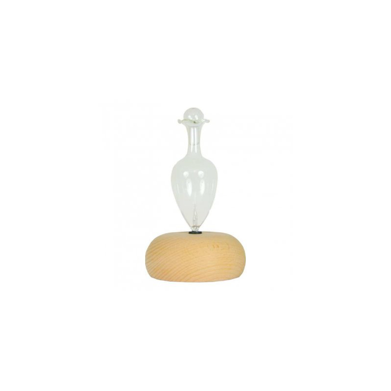 Contenu : - 1 base en bois vernis avec semelle antidérapante (Bois issus des forêts gérés raisonnablement). - 1 verrerie artisanale ( (en verre soufflé renforcé, verrerie fine) - 1 capuchon de verre anti-poussière - 1 transformateur (230V/12V~50Hz) - Packaging et notice soignés en Français et Anglais.