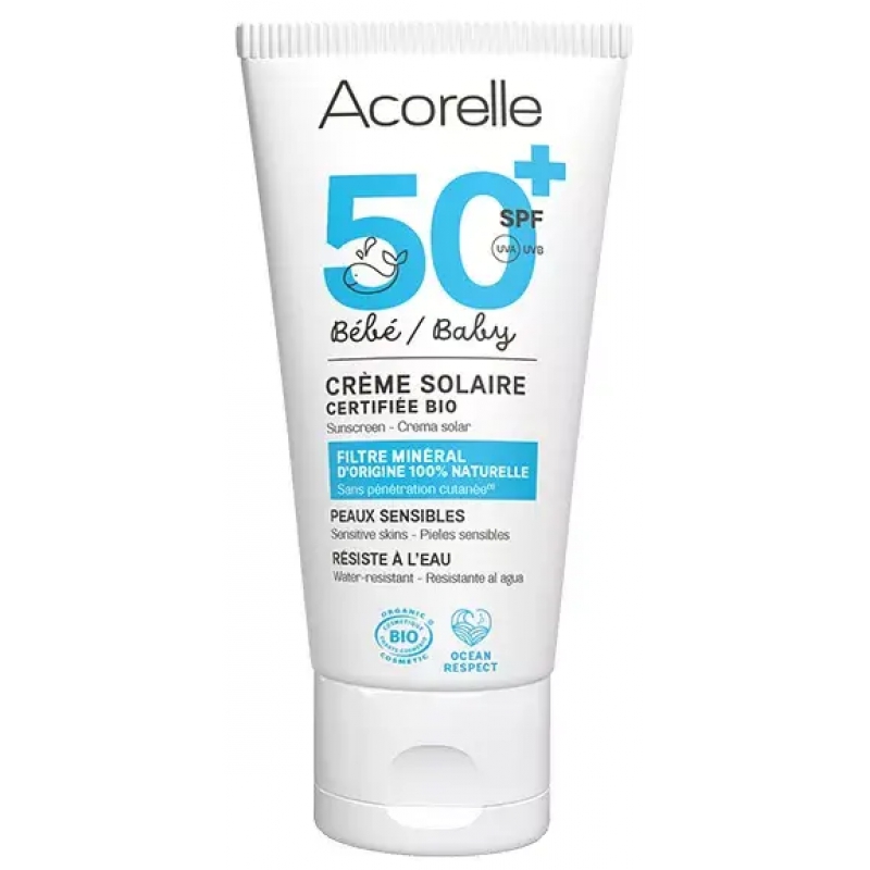 Acorelle Crème Solaire Bébé SPF 50 50ml offre une protection accrue à la peau des petits enfants à partir de 3 mois. Apaisante et hydratante, elle s’applique au visage ou sur les parties du corps exposées au soleil. Elle agit rapidement pour redonner une peau vive.