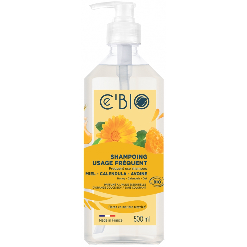 C'bio Shampooing usage fréquent Miel Calendula Avoine 500ml permet de laver tous les jours les cheveux de toute la famille en les adoucissant.