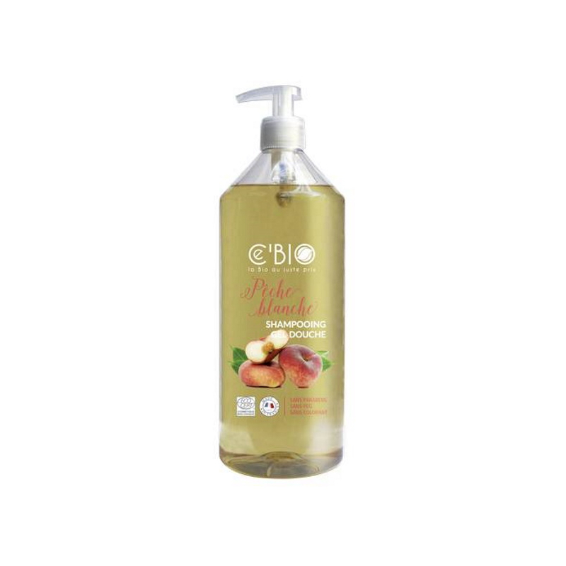 C'BIO Shampooing douche pêche blanche 1 L produit une mousse abondante qui nettoie aussi bien les cheveux que la peau. Grâce à ses ingrédients naturels et biologiques, ce lavant convient aussi bien aux enfants qu’aux adultes.