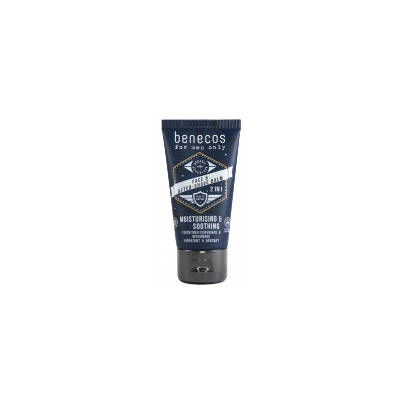 Le baume visage et après rasage 50 ml est enrichi en actifs nourrissant, régénérant et adoucissant. L’aloe vera est un véritable complexe hydratant et antioxydant pour la peau tandis que l’hydrolat de verveine active la régénération cutanée. Le bisabolol naturel soulage et assouplit la peau après le rasage. Ce cosmétique de la marque Benecos contient également de l’huile de tournesol, du beurre de karité, de l’huile de calendula et de l’huile de lavande. Ces actifs renforcent l’action hydratante de l’aloe vera en plus de rendre la peau plus douce. Ce baume est garanti sans colorant ni arôme synthétique, sans huiles minérales, sans parabène, sans silicone et sans paraffines.