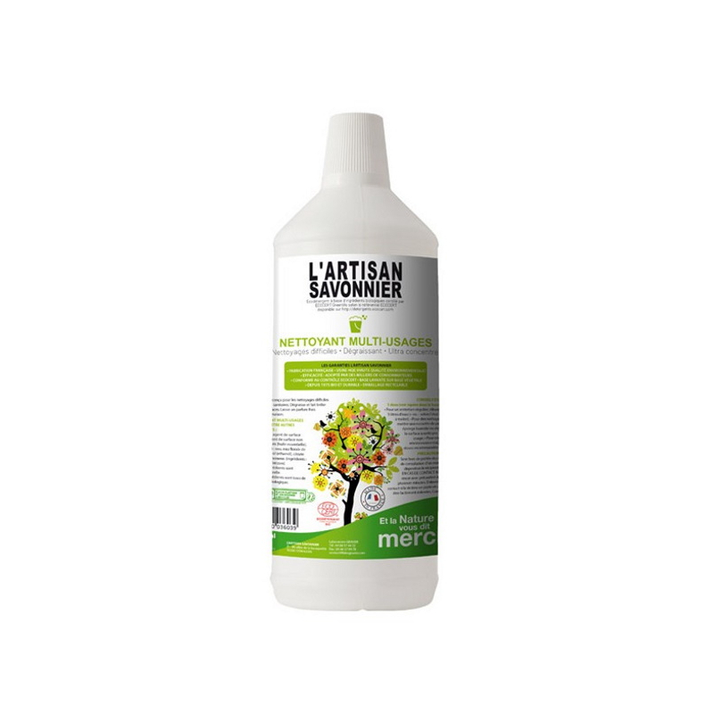 L Artisan Savonnier Entretien Nettoyant multi usages 1L, un nettoyant universei multi surfaces et multi usages.