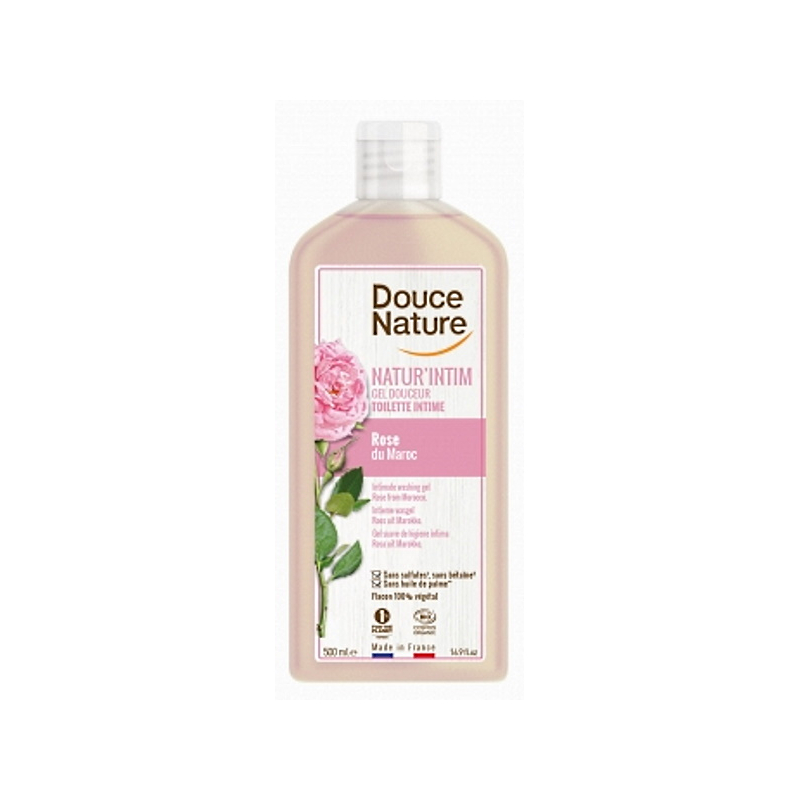 Douce Nature Natur Intim Gel douceur intime Rose du Maroc 500 ml permet de laver avec grande douceur votre partie intime en préservant aussi son équilibre.