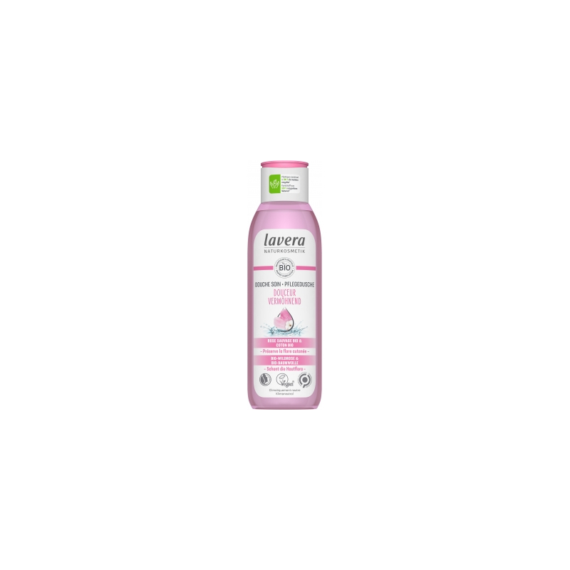 Pour que votre corps puisse avoir hygiène et adoucissement par l'extrait de rose, Lavera Douche soin Douceur apporte la base lavante douce, l'extrait de rose et le jus d'aloe vera.