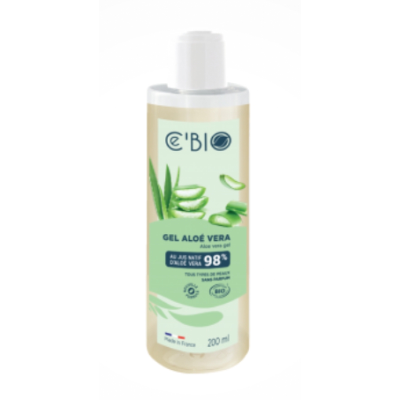 Cé'BIO Gel d'Aloé Véra 98% 200 ml sans parfum, permet d'apporter un gel quasi pur de jus d'aloe vera pour les peaux sensibles et irritées.