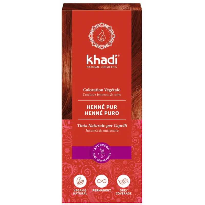 Khadi Coloration végétale Henné Pur cuivré 100 gr apporte selon le type de coloration du cheveu des reflets acajou ou cuivrés selon les cas.