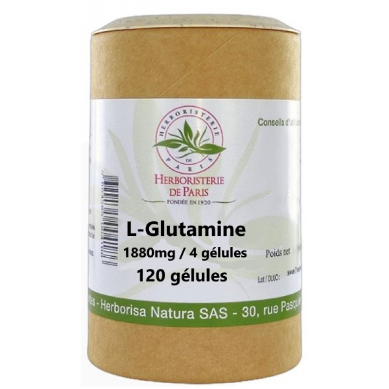 Herboristerie de Paris L Glutamine 120 Gélules permet d'apporter une régulation métabolique, équilibre acido-basique, perméabilité intestinale, immunité et équilibre nerveux.