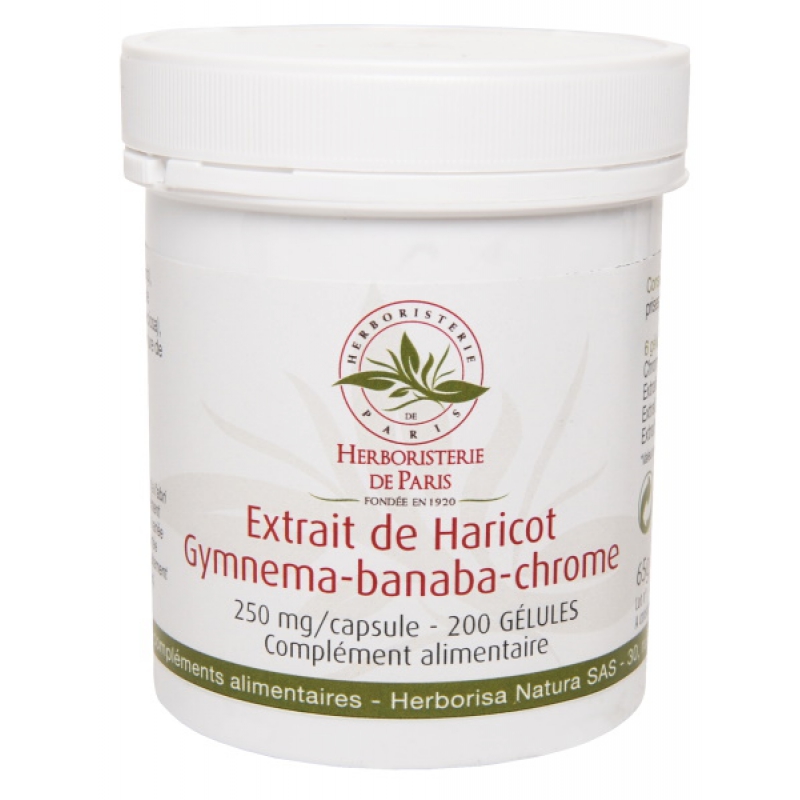 Herboristerie de paris Gluci silhouette Extrait de Haricot Gymnema Banaba Chrome 200 Gélules permet d'aider à réguler un taux de glycémie normale par le chrome et à apporter un effet fibres important.
