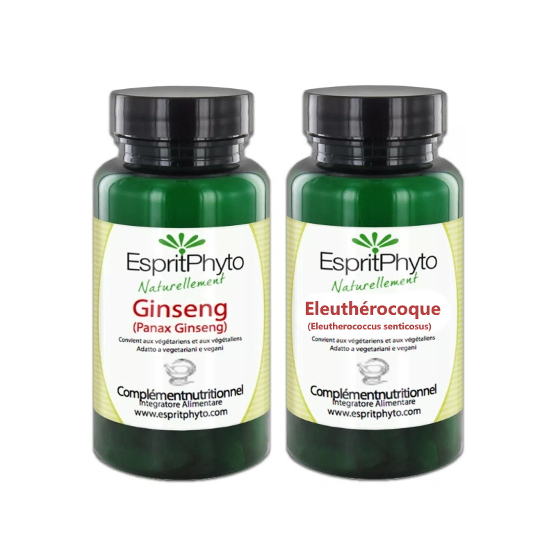Espritphyto Duo Ginseng Eleuthérocoque 2x90 gélules permet de tonifier l'organisme et l'esprit tout en calmant les problèmes de stress.