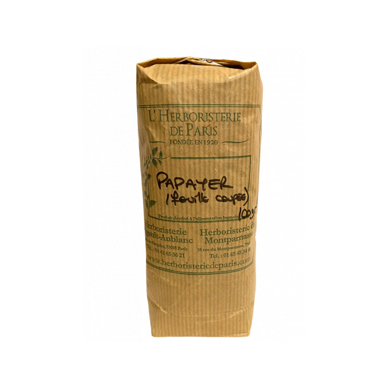 Herboristerie de Paris Papayer Feuille 100gr est une tisane vrac pour préparation d'une infusion de feuilles de papaye.