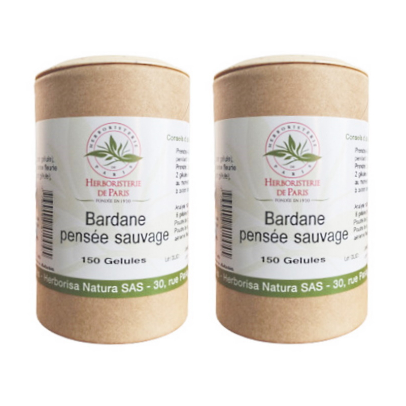 La bardane pensée sauvage lot de 2 boîtes 150 gélules végétales est un complément alimentaire efficace pour traiter les problèmes de peau. Sa formule à base de produits naturels bénéficie de nombreuses vertus.