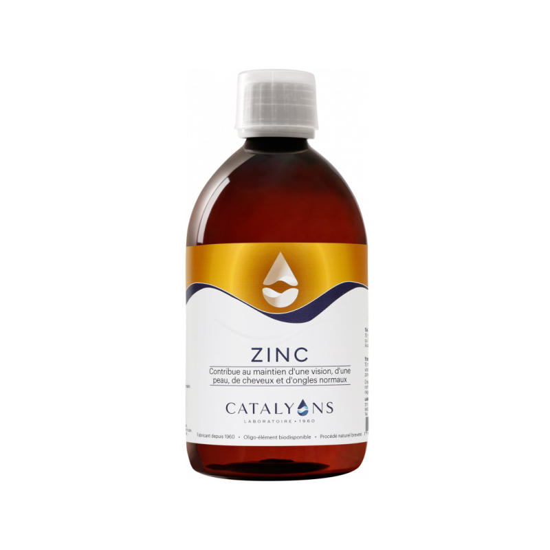 Catalyons oligo-élément Zinc 500ml permet de contribuer à des défenses naturelles normales, à maintenir une peau normale, à une synthèse protéique normale.
