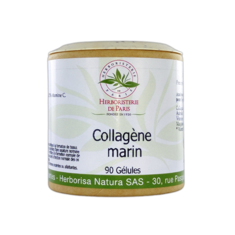 Pour votre organisme et avoir la nutrition des tissus de soutien pour aider à renforcer les ligaments, les cartilages, mais aussi pour aider le tissu conjonctif de la peau, on vous propose tout simplement, Herboristerie de paris Collagène Marin 90 gélules, pour des actifs comme le Collagene marin hydrolysé, le gluconate de manganèse, l'extrait de fruits d’acérola (Malpighia punicifolia) à 25% vitamine C.